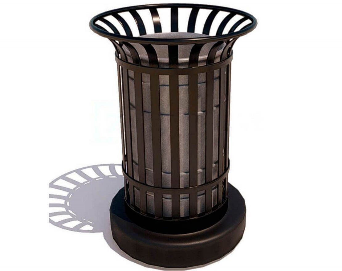 Урна «Вулкан» обладает антивандальными свойствами и устойчива к любым проявлениям погоды. Модель открытого типа представляет собой бетонный вазон, который заключен в изящный каркас, вырезанный лазерным станком из листовой стали. Помимо базового черного цвета, металлическая конструкция доступна в любом из стандартных оттенков шкалы RAL.