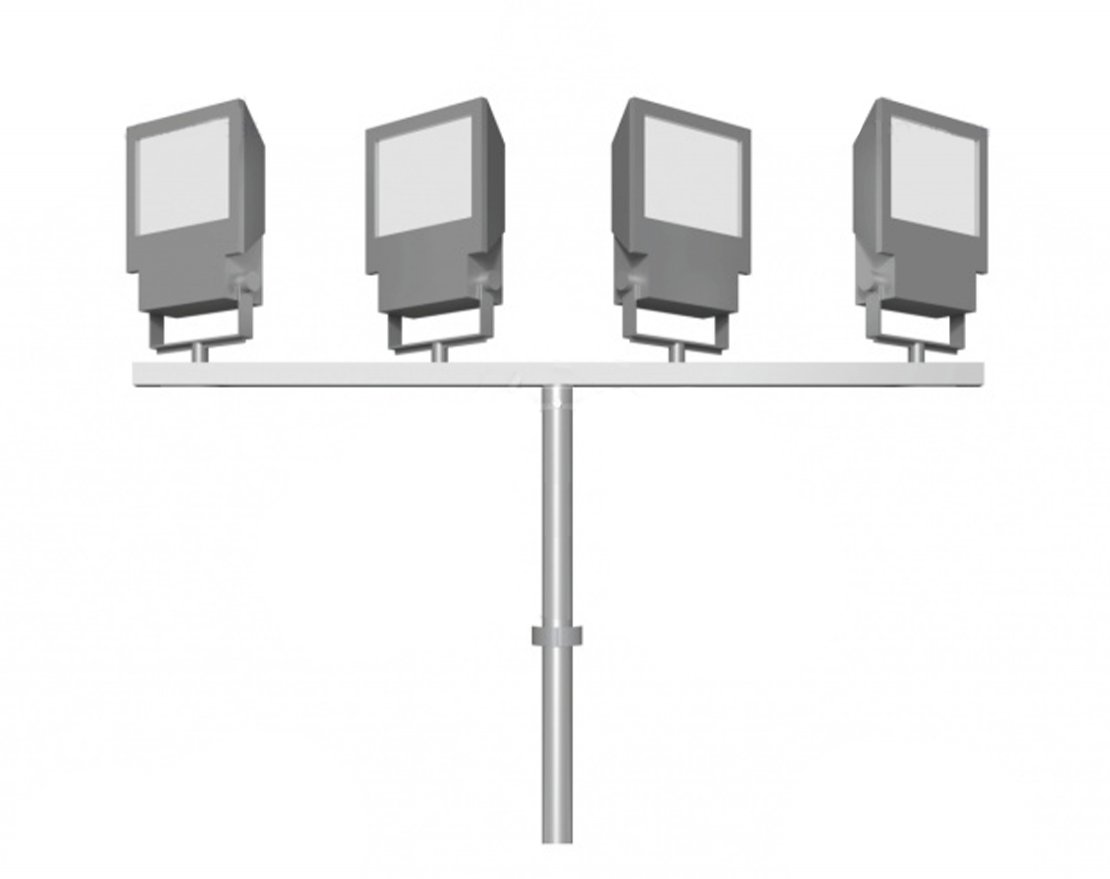 Прожекторные кронштейны используются для организации направленного освещения на спортивных площадках, стадионах, открытых производственных территориях и аэропортах. Предназначены для размещения от 1 до 5 осветительных приборов-прожекторов на опорах и мачтах освещения.